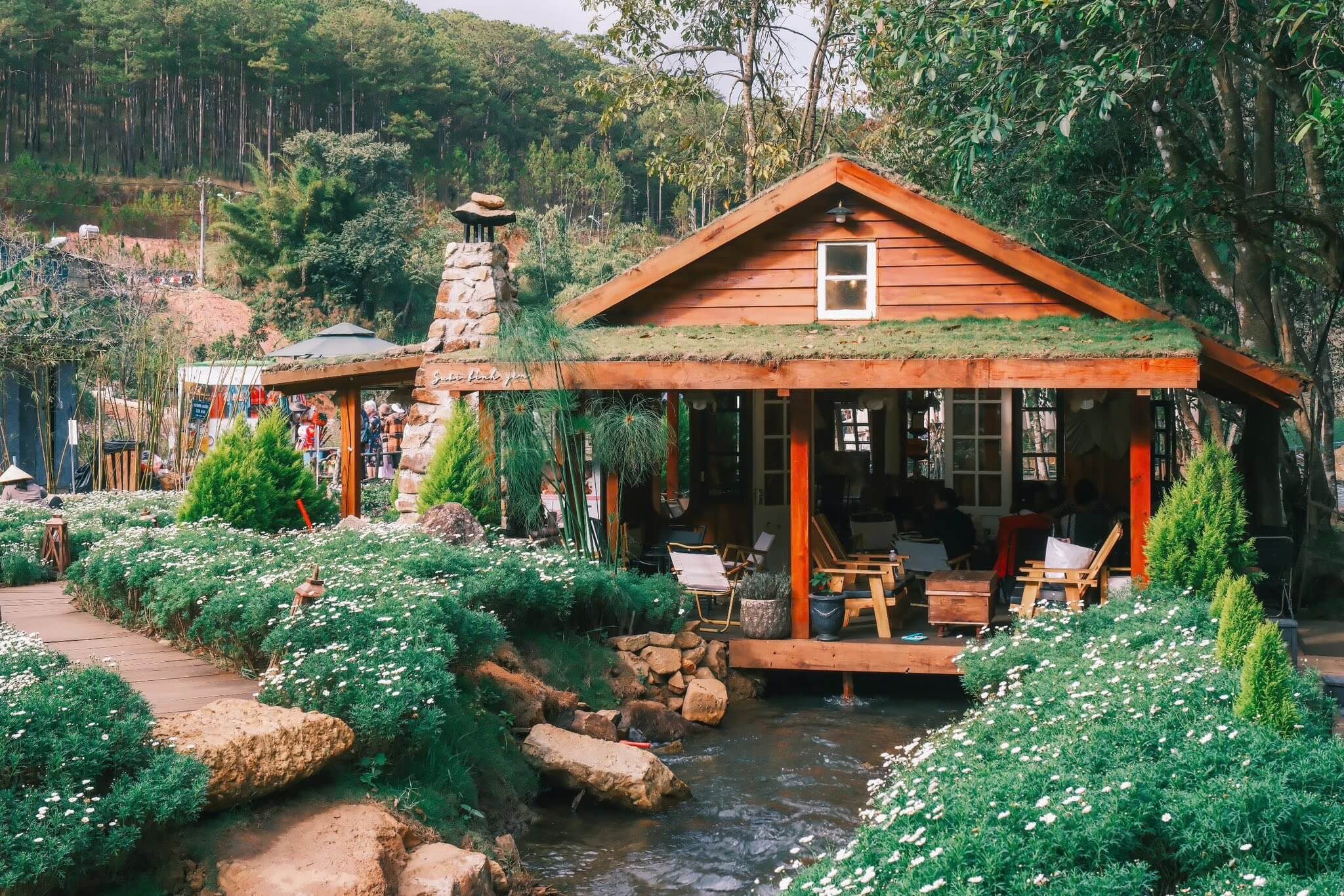 Điểm nổi bật: Bãi cỏ rộng – ngôi nhà gỗ xinh – ánh sáng đẹp – phù hợp concept vintage, Hàn Quốc hoặc tạp chí.