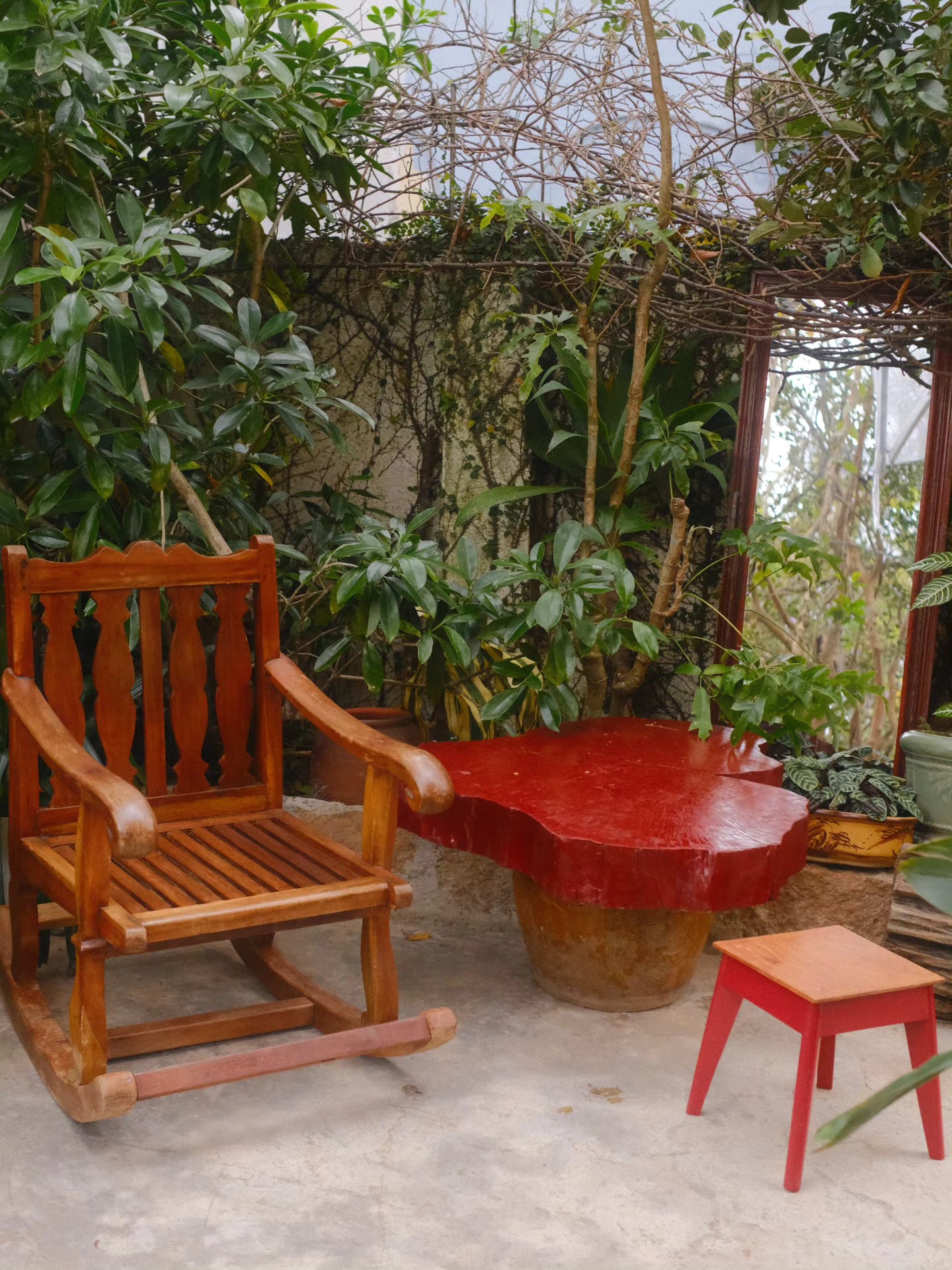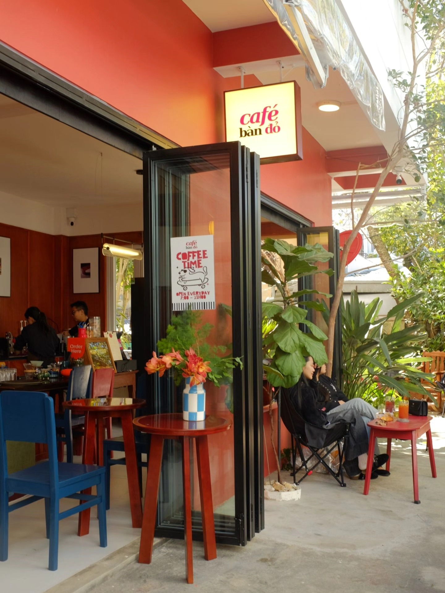 Nằm trong một con hẻm nhỏ, Bàn Đỏ Café mở ra khu vườn xinh với vài chiếc bàn đỏ nổi bật giữa nền cây xanh. Tường đỏ, góc sân nhiều màu sắc, không gian mở thoáng đãng, đôi khi còn nghe tiếng chim hót.