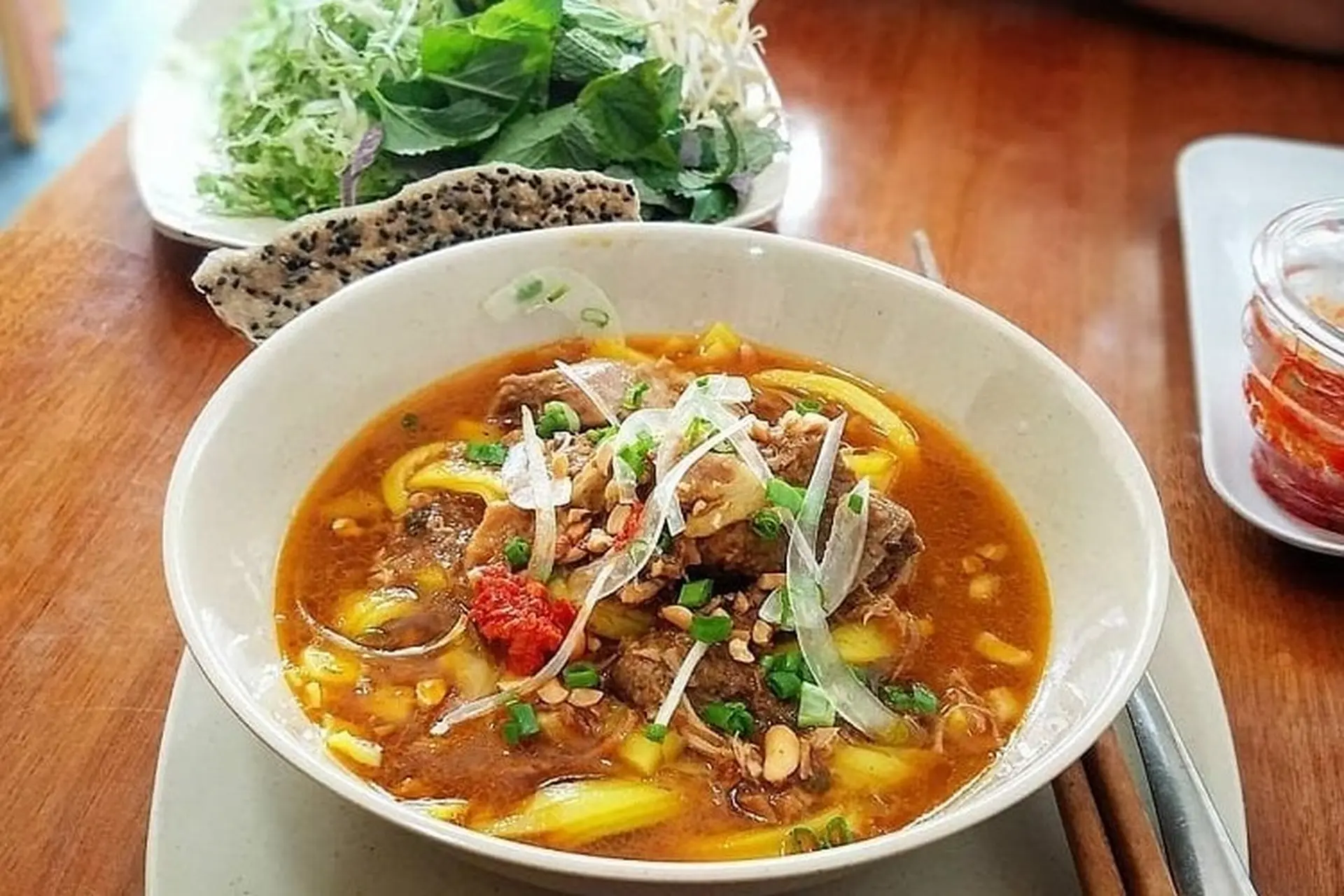 Không chỉ có món địa phương, Đà Lạt còn có nhiều quán mì Quảng ngon. Tô mì vàng óng, ít nước nhưng đậm vị, ăn cùng bánh tráng nướng giòn. Món này thích hợp cho người muốn ăn chắc bụng.