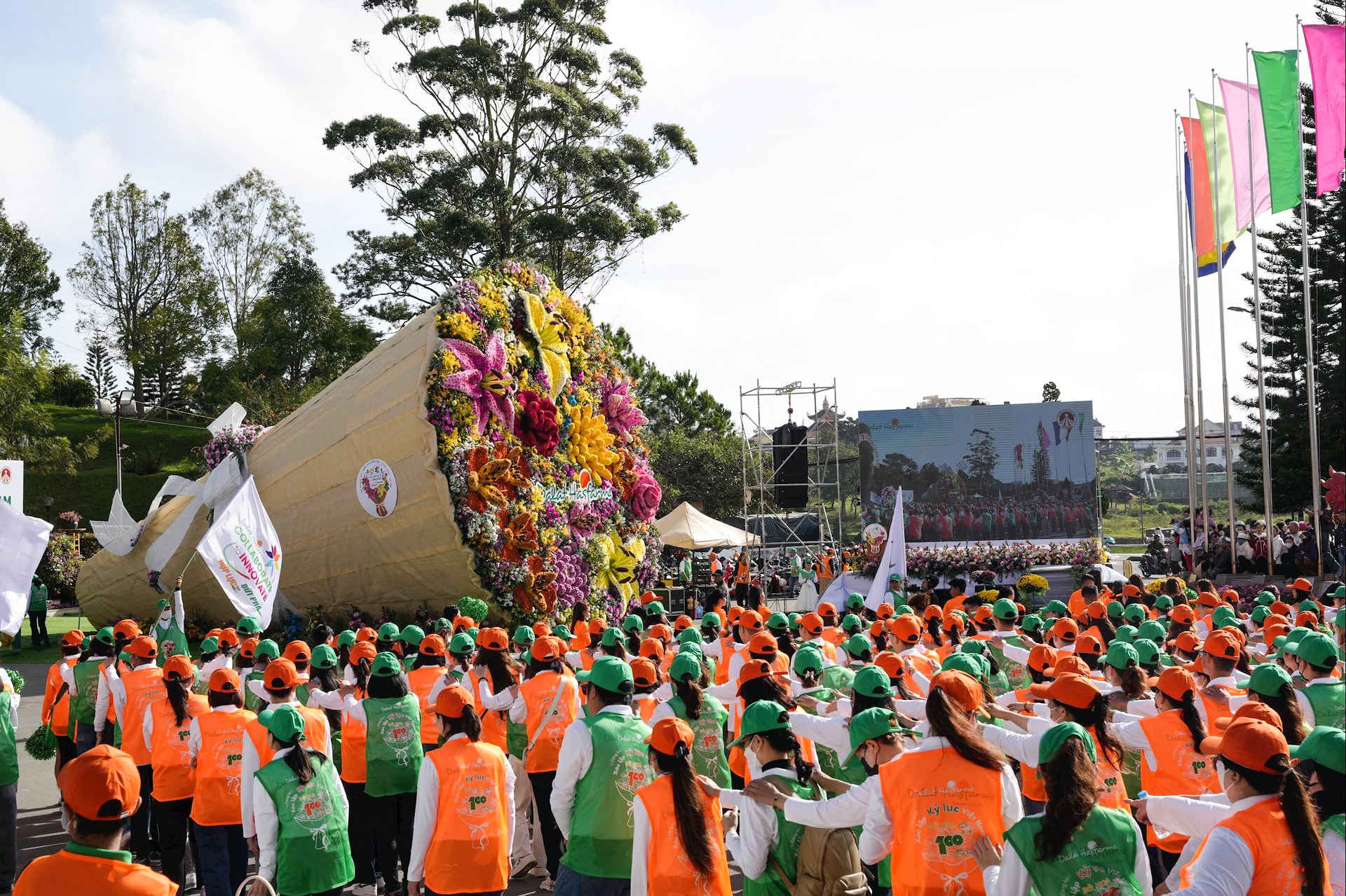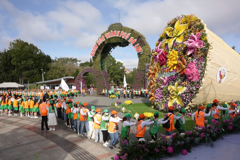Vườn hoa Thành phố Đà Lạt những ngày qua trở nên nhộn nhịp hơn thường lệ khi xuất hiện bó hoa tươi lớn nhất Việt Nam, một công trình nghệ thuật hoa quy mô lớn vừa được Tổ chức Kỷ lục Việt Nam (VietKings) chính thức xác lập kỷ lục.