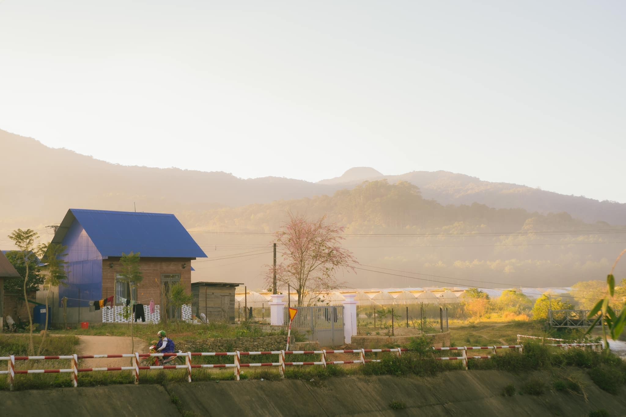 Không phải điểm check-in cụ thể, nhưng đây là khu vực rất đáng để chạy xe chậm: vườn rau, nhà kính, khói bếp buổi chiều. Càng đi sâu càng vắng.