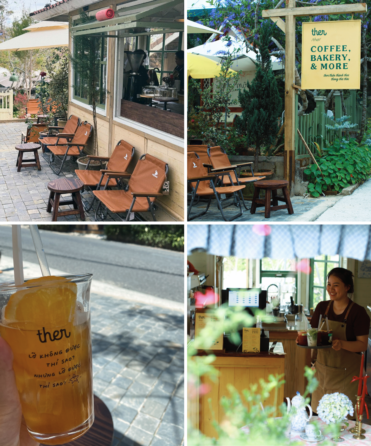 Ther nổi bật với tone màu sáng, bàn ghế xinh xắn và phong cách decor như một tiệm cà phê nhỏ ở châu Âu. Từ bảng hiệu đến ly nước đều được chăm chút nên rất dễ hiểu vì sao quán xuất hiện nhiều trên mạng xã hội.