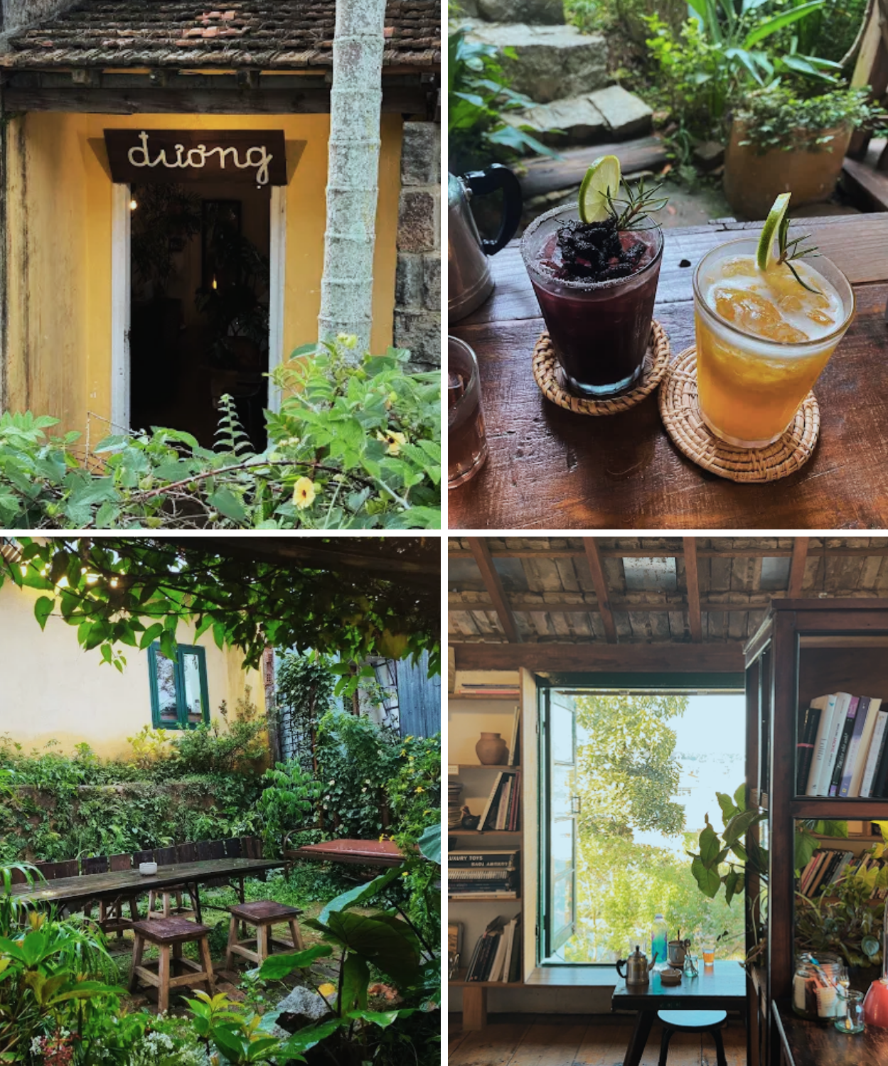 Quán Đương mang cảm giác như một căn nhà cũ được cải tạo thành quán nước nhỏ xinh. Tone vàng ấm, ánh đèn dịu và những chi tiết gỗ tạo nên không khí gần gũi, đặc biệt hợp vào buổi tối se lạnh của Đà Lạt.
