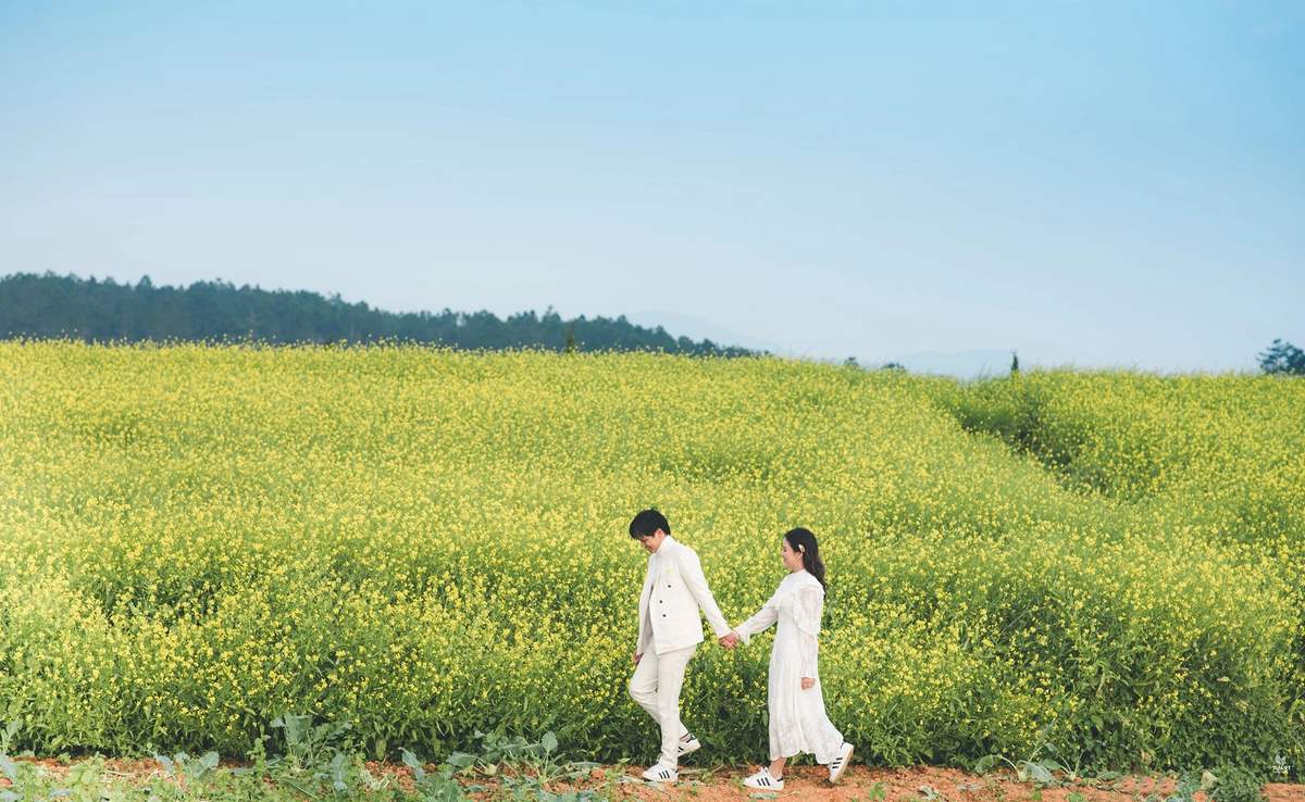 Song song với cải trắng, tháng 11 – 12 cũng là mùa của cải vàng. Những cánh đồng hoa vàng óng rực rỡ trải dài, nổi bật trên nền trời cao nguyên xanh thẳm. Hoa cải vàng mang đến khung cảnh tươi vui, tràn đầy sức sống, khiến ai cũng muốn dừng lại ngắm nhìn.