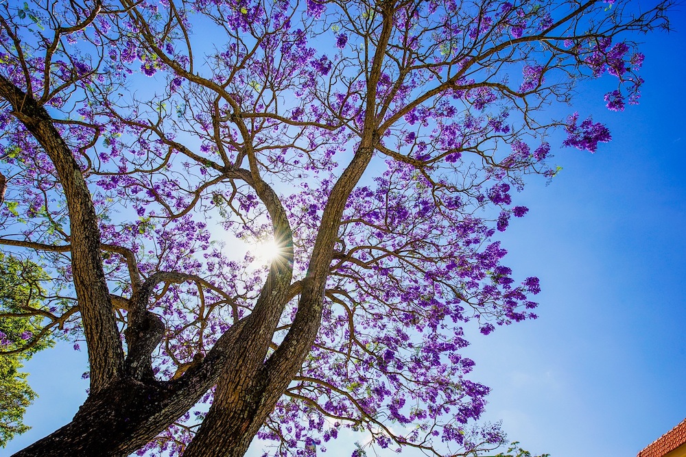 Tháng 3 – 4, Đà Lạt như khoác thêm tấm áo tím mộng mơ khi phượng tím nở rộ. Khắp những con đường như Bùi Thị Xuân, Trần Phú, hoa tím rủ xuống thành từng chùm, nhẹ nhàng trong gió. Đây cũng là thời điểm nhiều cặp đôi chọn để chụp ảnh cưới, bởi không gian tím biếc lãng mạn chẳng khác gì khung cảnh châu Âu.