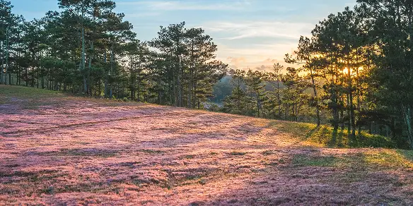 Đồi cỏ hồng ven hồ Tuyền Lâm không chỉ là điểm check-in theo mùa, mà còn là khoảnh khắc đẹp đẽ hiếm hoi mà thiên nhiên dành tặng Đà Lạt. Mỗi buổi sáng ở đây đều nhẹ nhàng, lãng mạn và mang một năng lượng rất riêng, nơi bạn có thể tạm quên đi nhịp sống vội, để đứng giữa đồi cỏ phớt hồng, nghe tiếng gió qua rừng thông và nhìn những tia nắng đầu ngày phủ lên mặt hồ.