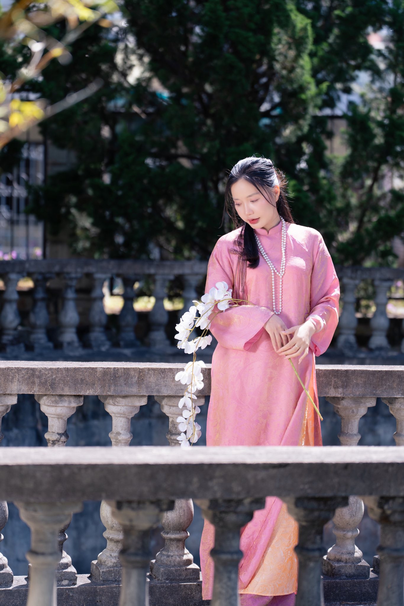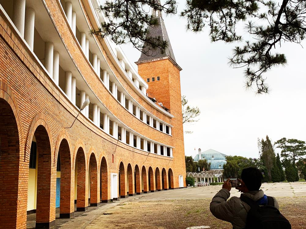 Khu Hòa Bình mang nét giao thoa giữa Đà Lạt xưa và nay. Áo dài chụp ở đây tạo cảm giác rất “đời”, rất Đà Lạt – phù hợp với concept hiện đại pha truyền thống.