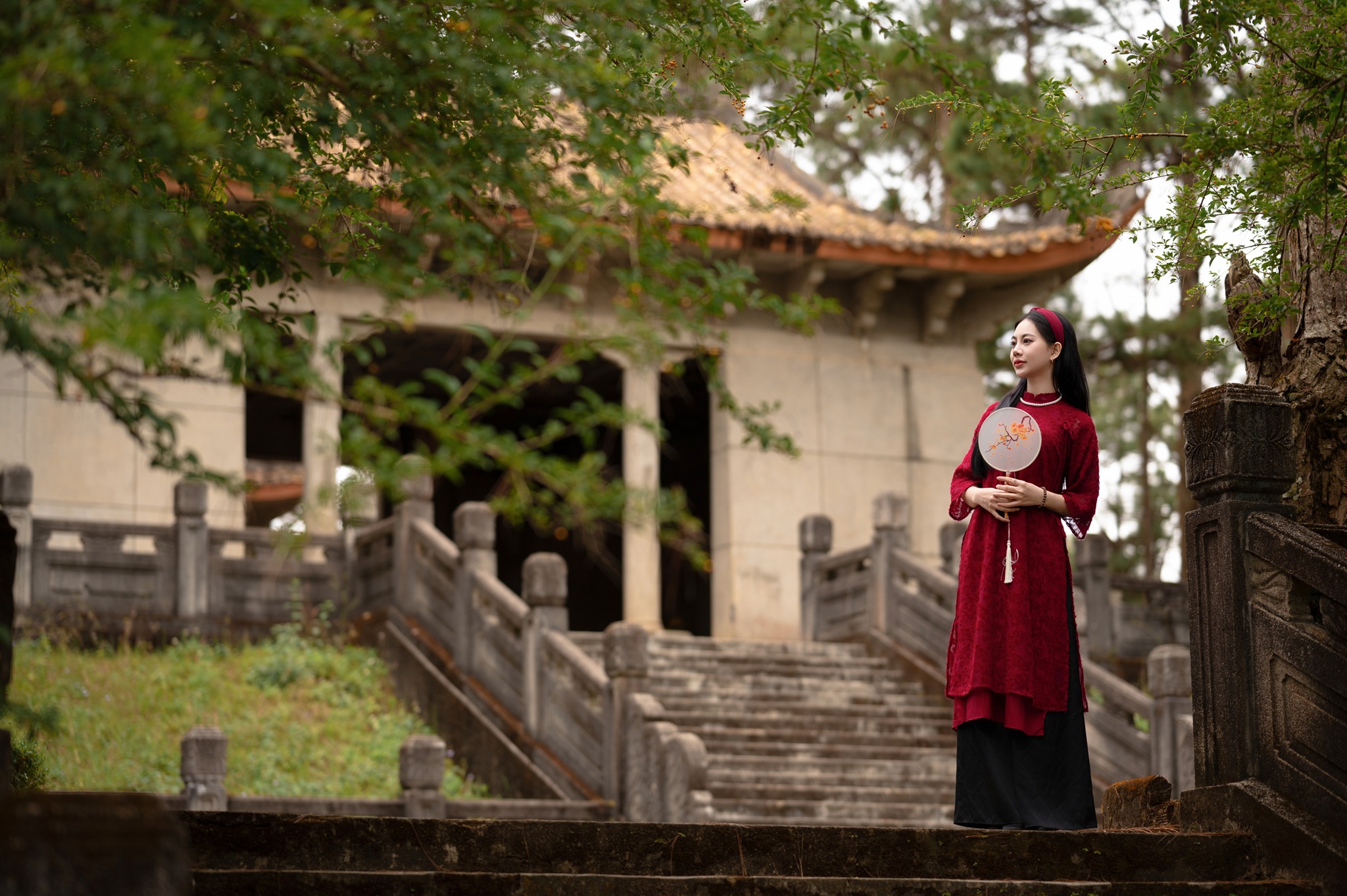 Không gian cổ, ít người, kiến trúc mang dấu ấn lịch sử giúp bộ ảnh áo dài trở nên sâu lắng và sang trọng. Đây là địa điểm rất được yêu thích cho các bộ áo dài mang phong cách xưa.
