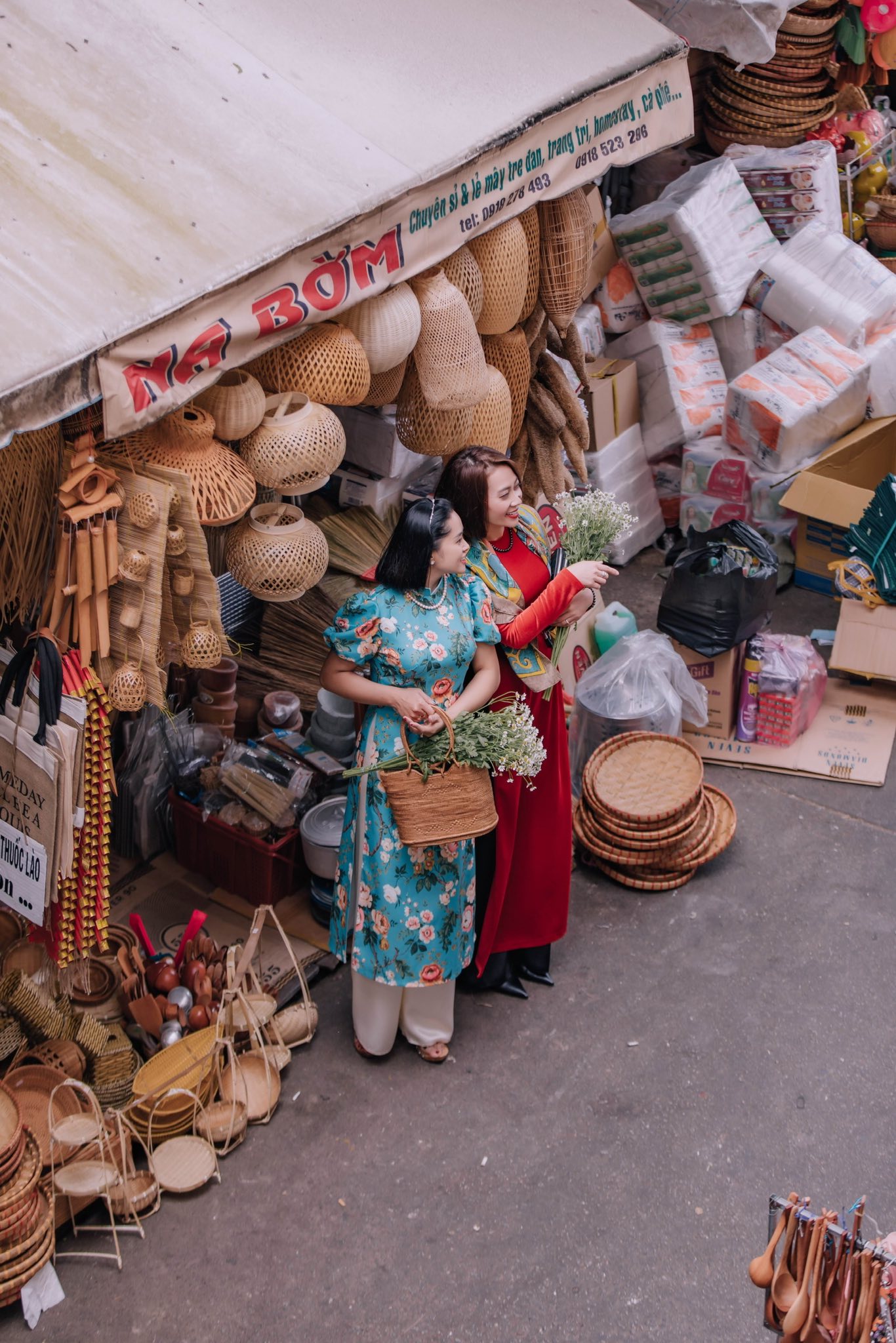 Chợ Đà Lạt mang không khí Tết rất rõ: hoa tươi, trái cây, sắc màu rộn ràng và nhịp sống đời thường. Áo dài ở đây không cần cầu kỳ nhưng vẫn toát lên nét xuân gần gũi, tươi mới.