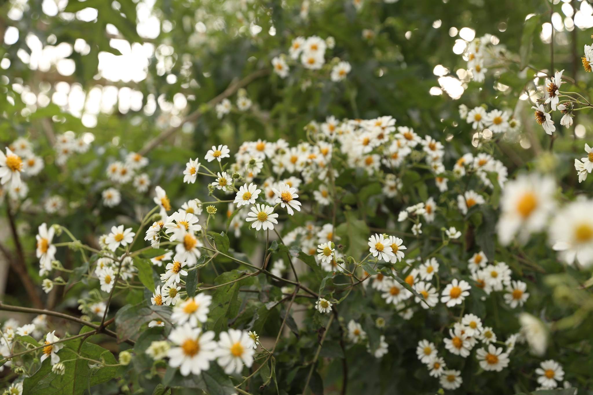 Dã quỳ trắng vẫn thuộc họ cúc như những người “anh em” vàng rực, nhưng sắc trắng mang đến cho hoa một khí chất khác hẳn: dịu dàng, thanh khiết và có phần mơ hồ.