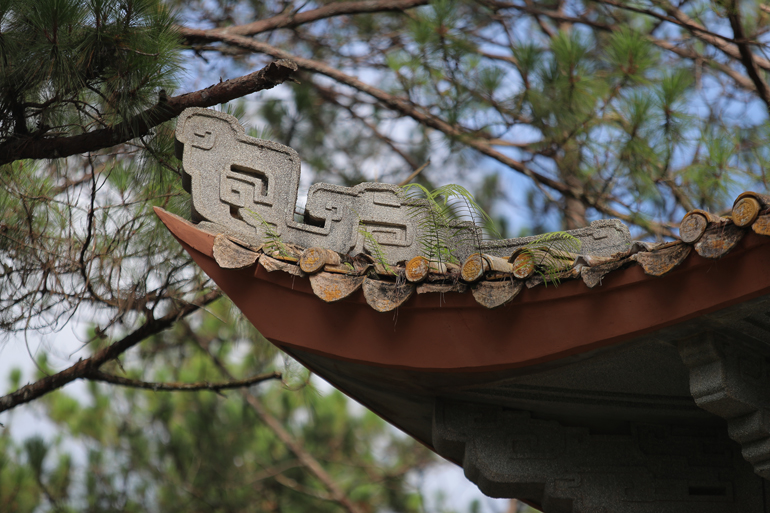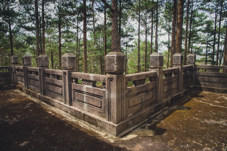 Một góc nhỏ bên phải lăng mở ra view thông xanh trải dài phía dưới. Chụp kiểu quay lưng hoặc ngồi nghiêng đều rất hợp.