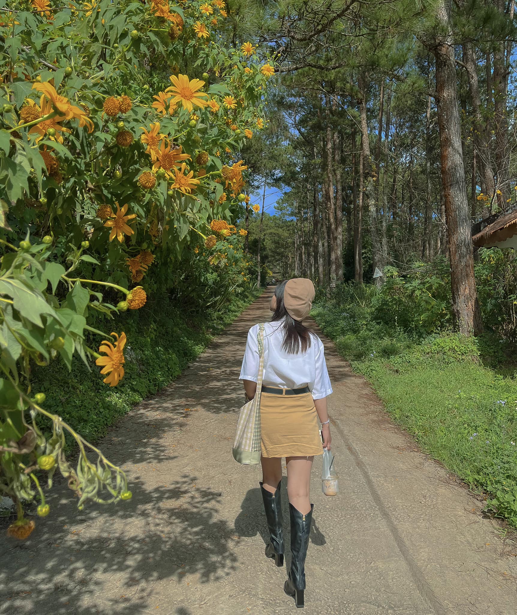 Đi xuống khu vực phía sau, bạn sẽ bắt gặp một đoạn đường thông thẳng tắp, hiếm khi có người qua lại. Ánh sáng xuyên qua tán lá tạo nên những dải nắng đẹp – cực hợp chụp ảnh kiểu dreamy.
