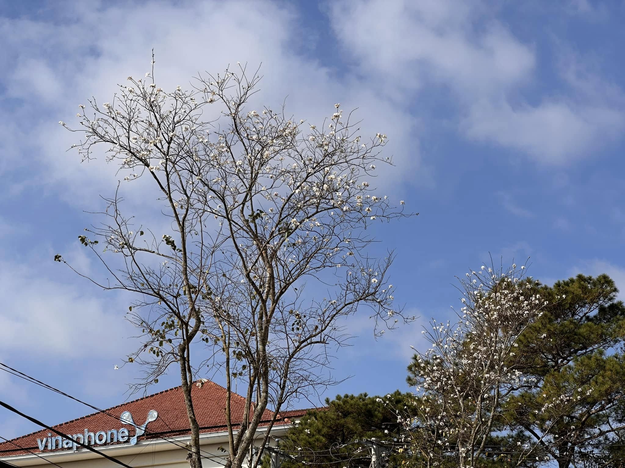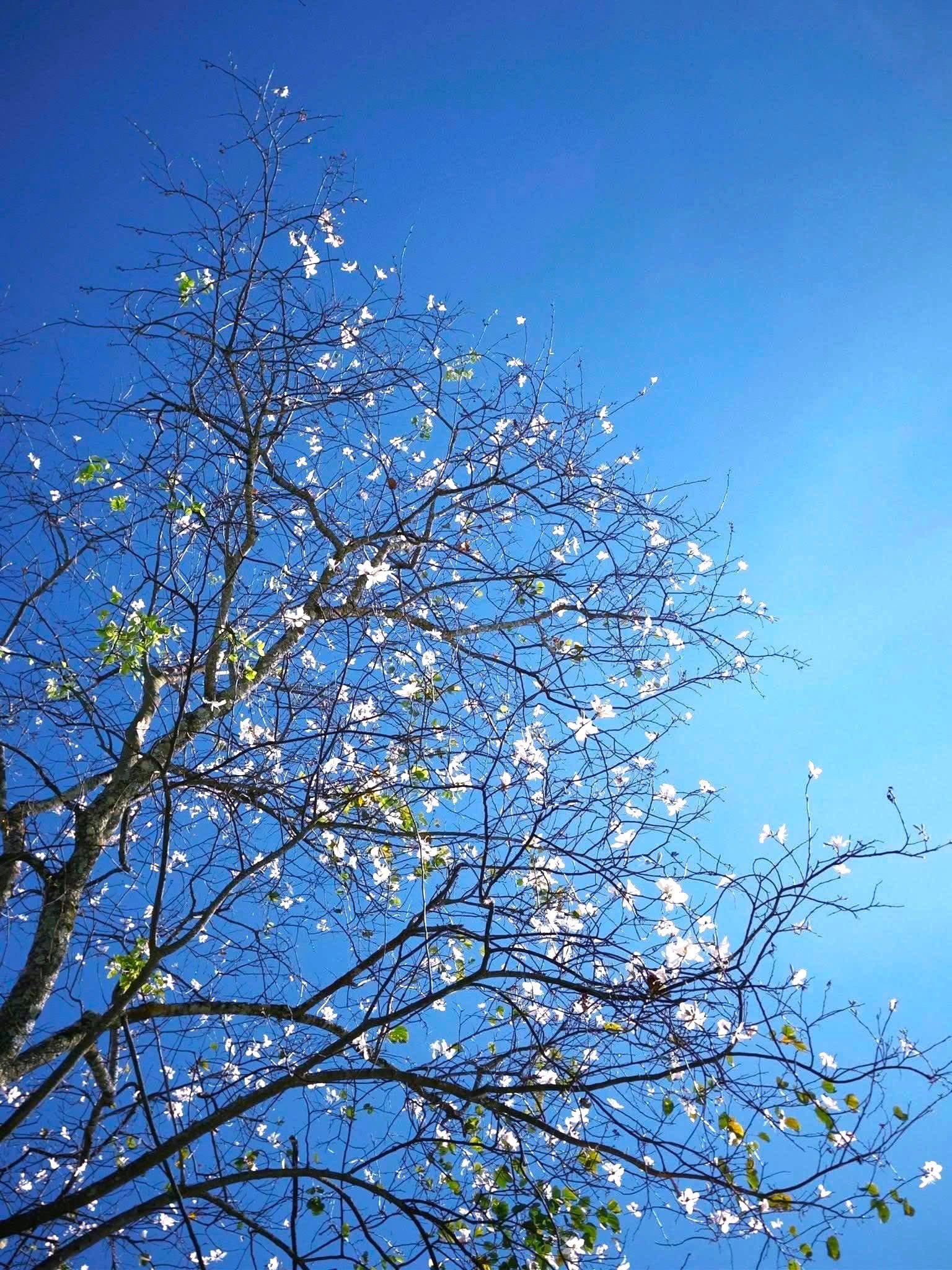 Không rực rỡ như mai anh đào, hoa ban trắng mang nét thanh thoát, dịu dàng. Những chùm hoa nở đồng loạt, phủ kín tán cây, nổi bật trên nền trời xanh và những hàng thông cao vút. Càng nhìn lâu, càng thấy bình yên.