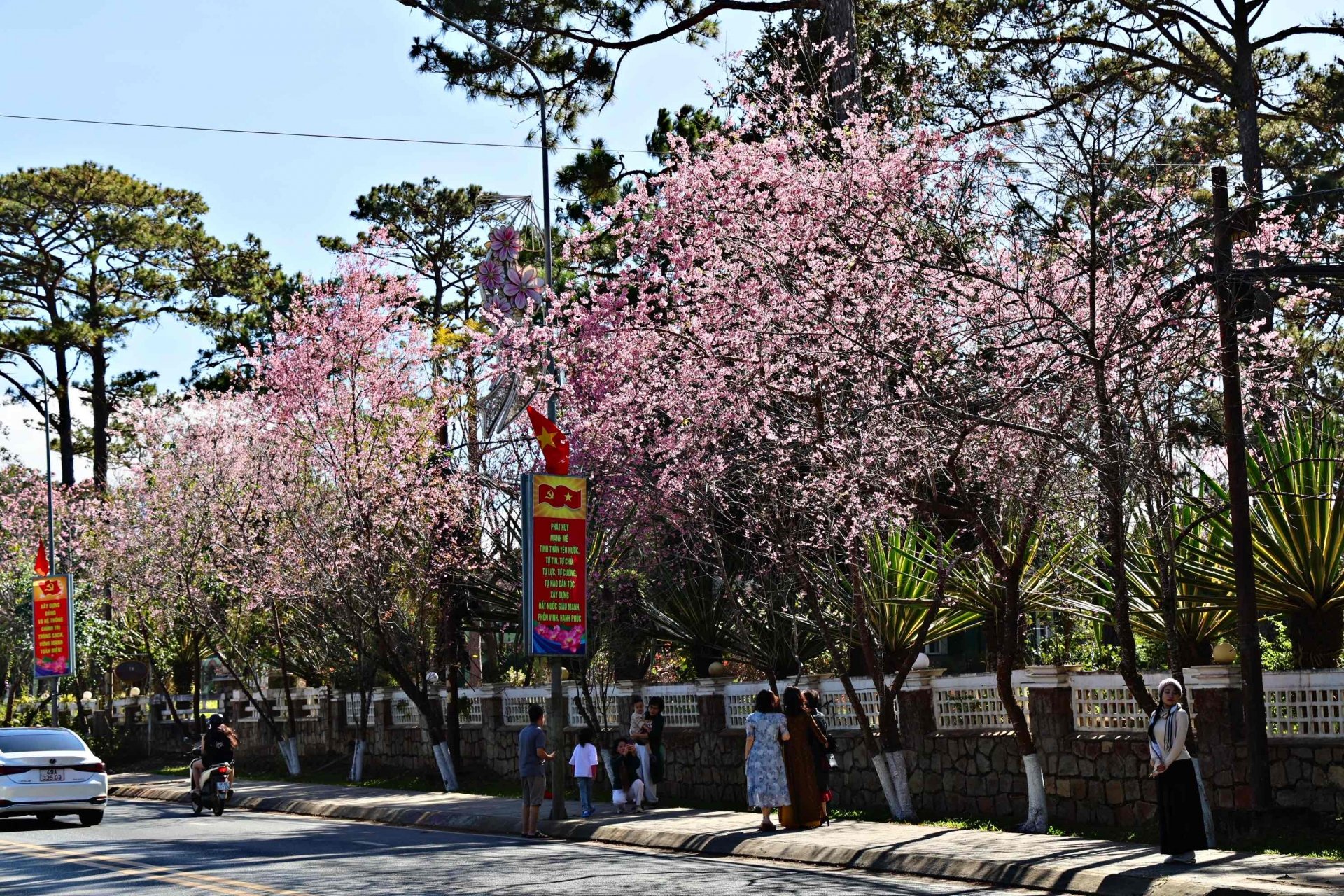 Không cần đi xa, chỉ cần chạy xe dọc những con đường hoa nở rộ là bạn đã cảm nhận trọn vẹn không khí Tết Nguyên Đán tại Đà Lạt. Mỗi cung đường mang một vẻ đẹp riêng: nơi rực rỡ sắc hồng mai anh đào, nơi lại bình yên với hoa bên hiên nhà.