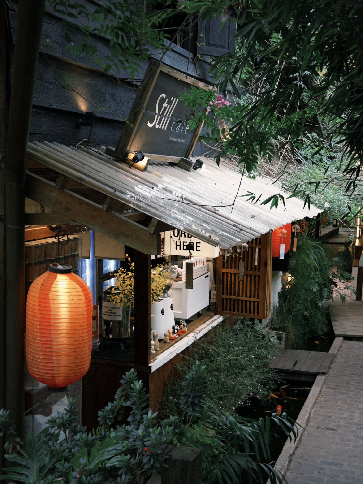 Still Cafe mang đậm phong cách Nhật Bản, từ hồ cá koi, lồng đèn cho đến những căn nhà gỗ nhỏ. Nếu bạn từng xem Spirited Away, sẽ dễ dàng cảm nhận được sự tương đồng trong cách bài trí và không khí.