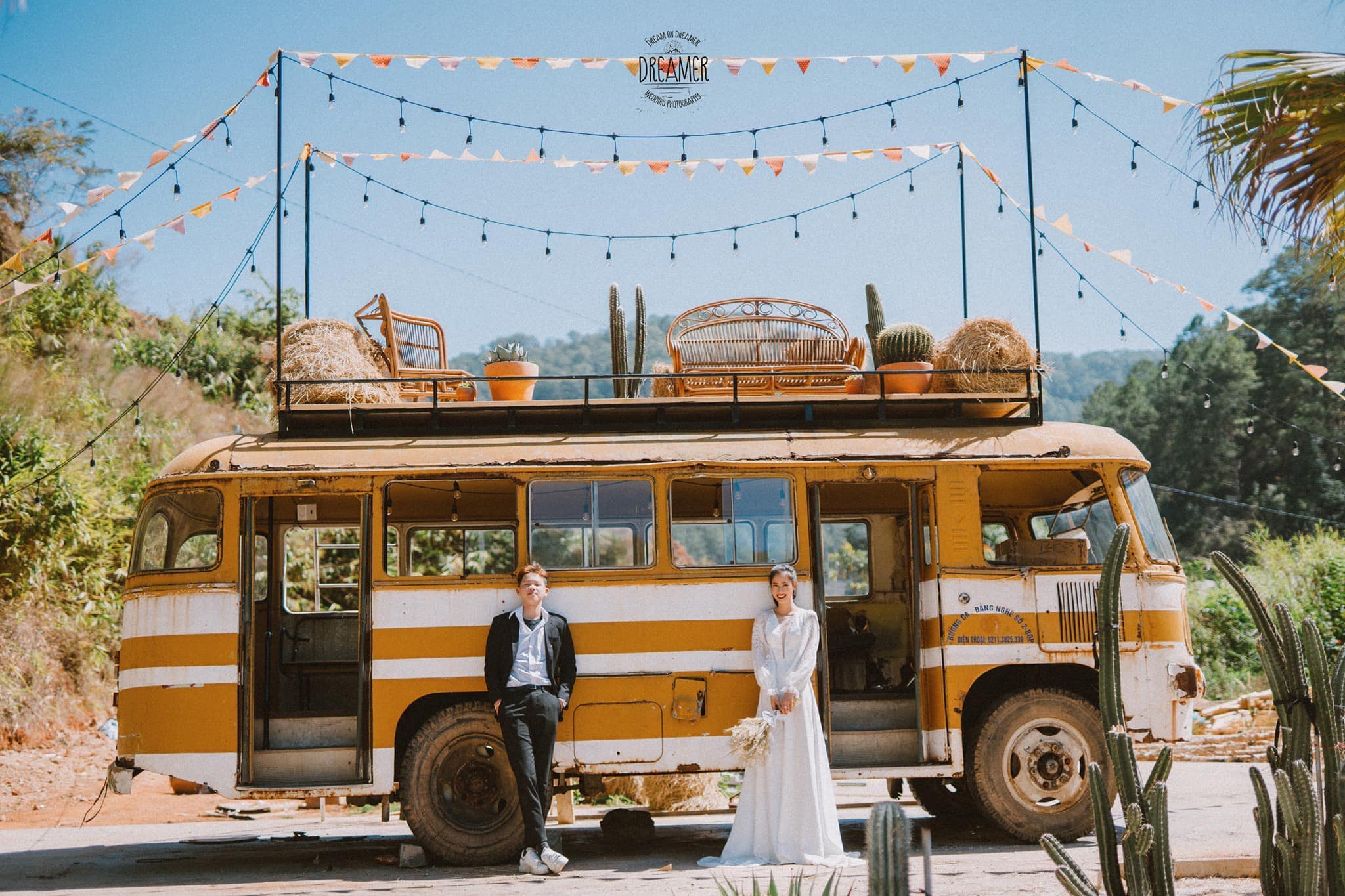 Nếu Ghibli có những thế giới đầy màu sắc và kỳ lạ, thì Kombi Land chính là phiên bản đời thực tại Đà Lạt. Quán nổi bật với những chiếc xe cổ, tông màu cam – vàng – xanh đặc trưng, cùng khu vườn xương rồng độc đáo.