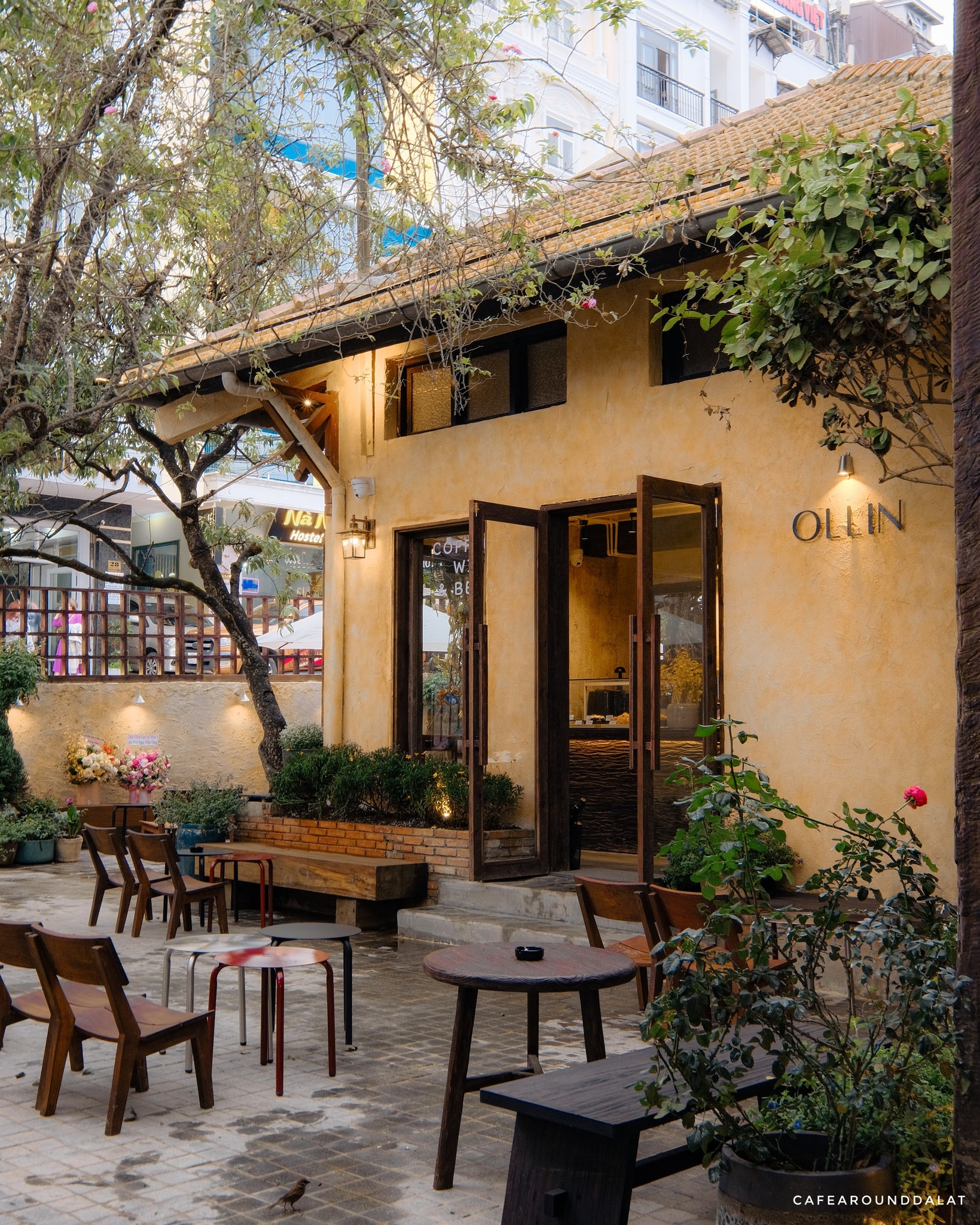 Không gian ở OLLIN mang nét châu Âu pha chút cổ điển giữa trung tâm thành phố. Quán có tường vàng, bàn gỗ, ánh đèn vàng ấm và những ô cửa lớn nhìn ra phố. Dù ở ngay trung tâm nhưng vẫn giữ được cảm giác riêng tư, tĩnh lặng. Bánh ngọt ở đây rất ngon, cà phê chuẩn vị, thích hợp để ngồi đọc sách hay trò chuyện vào buổi chiều.