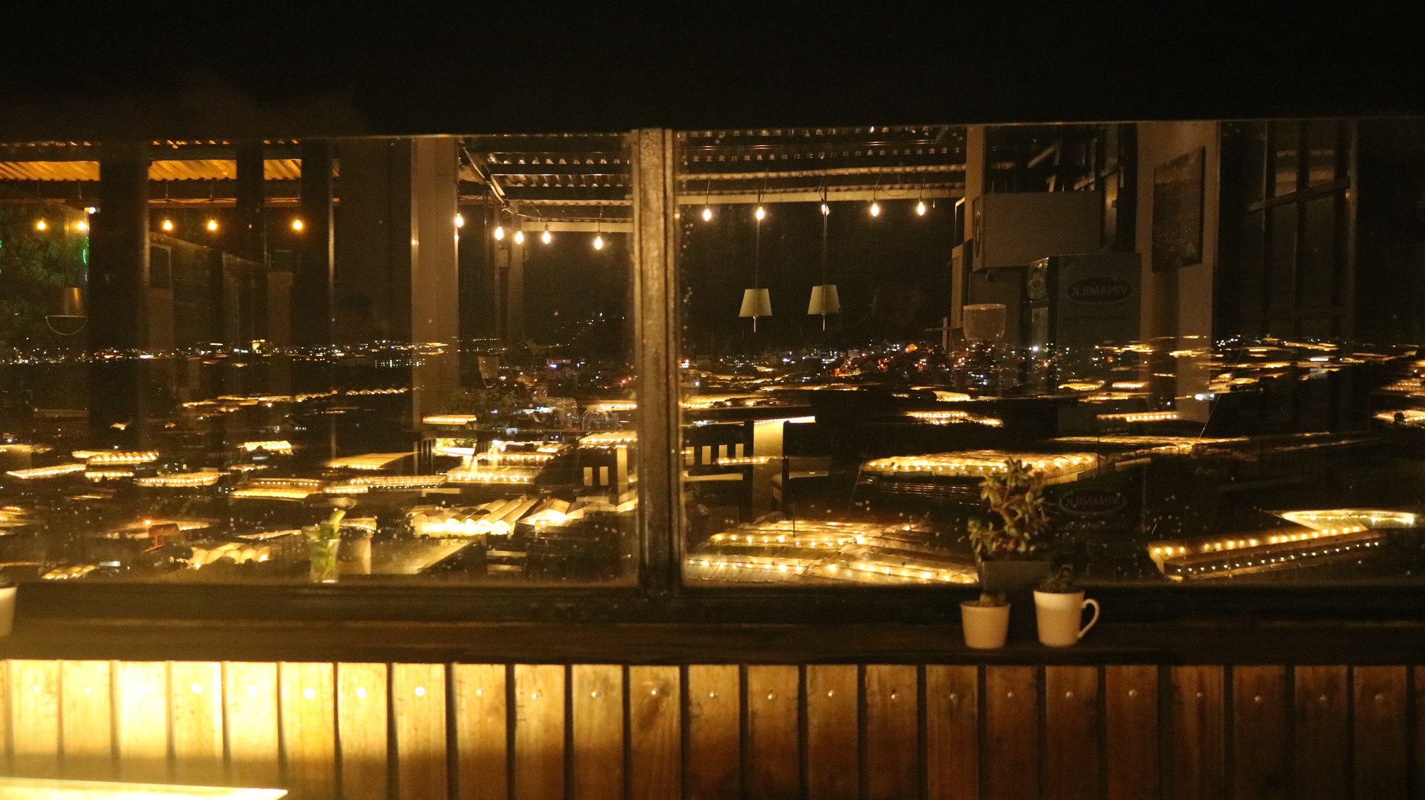 Panorama Café nằm ở vòng xoay 723, Trại Mát – một vị trí cao nổi bật giữa đồi thông. Đúng như tên gọi, quán mang đến tầm nhìn 360° bao trọn cảnh quan xung quanh. Ban ngày, bạn sẽ thấy những đồi chè xanh, cánh đồng hoa xen lẫn nhà kính đặc trưng của Đà Lạt. Khi đêm xuống, toàn bộ thành phố rực sáng trong hàng ngàn ánh đèn, tạo nên khung cảnh lung linh như bầu trời sao.