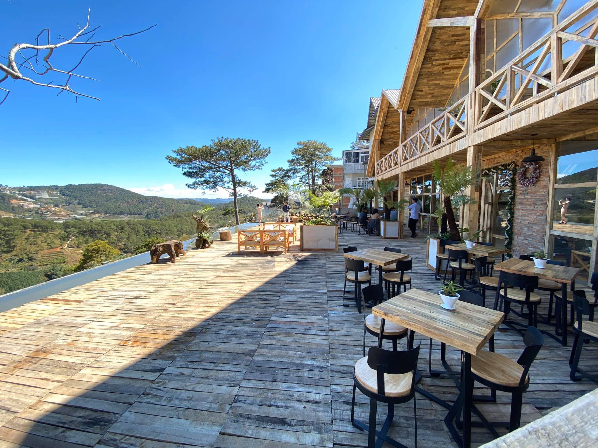 Địa chỉ tại số 25 Hoàng Hoa Thám, Dalat Mountain View mang phong cách mộc mạc và cổ điển. Quán nằm trên một đồi cao, ôm trọn tầm nhìn ra thung lũng và rừng thông xanh mát. Đây cũng là một trong những điểm đến nổi tiếng để “săn mây” vào những buổi sáng se lạnh.