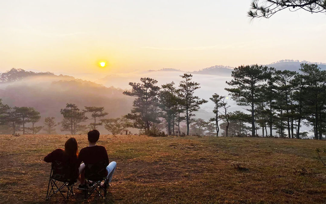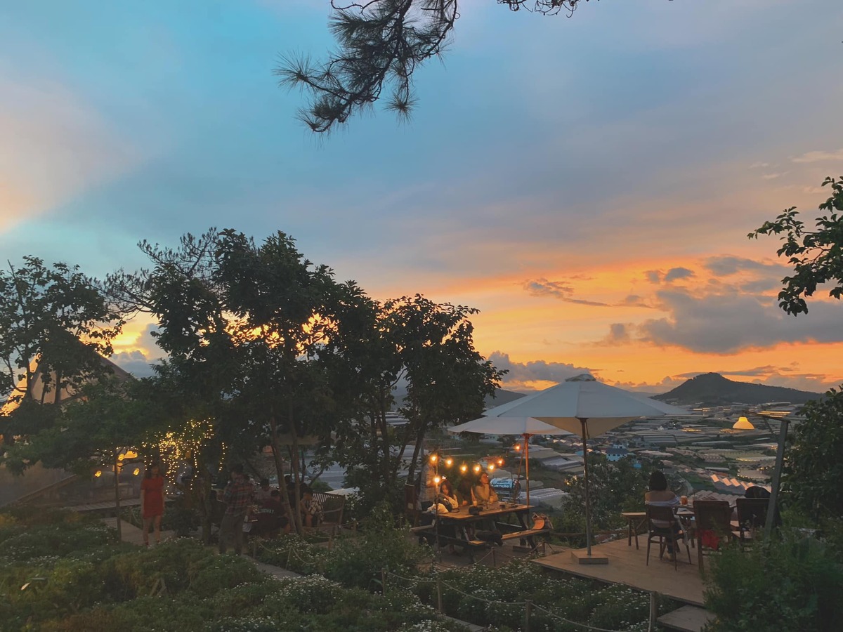 Buổi chiều ở Đà Lạt là lúc hoàng hôn nhuộm vàng cả thành phố. Còn gì lãng mạn hơn khi hai người cùng ngồi trong quán cà phê trên đồi, nhìn mặt trời dần khuất sau rừng thông?