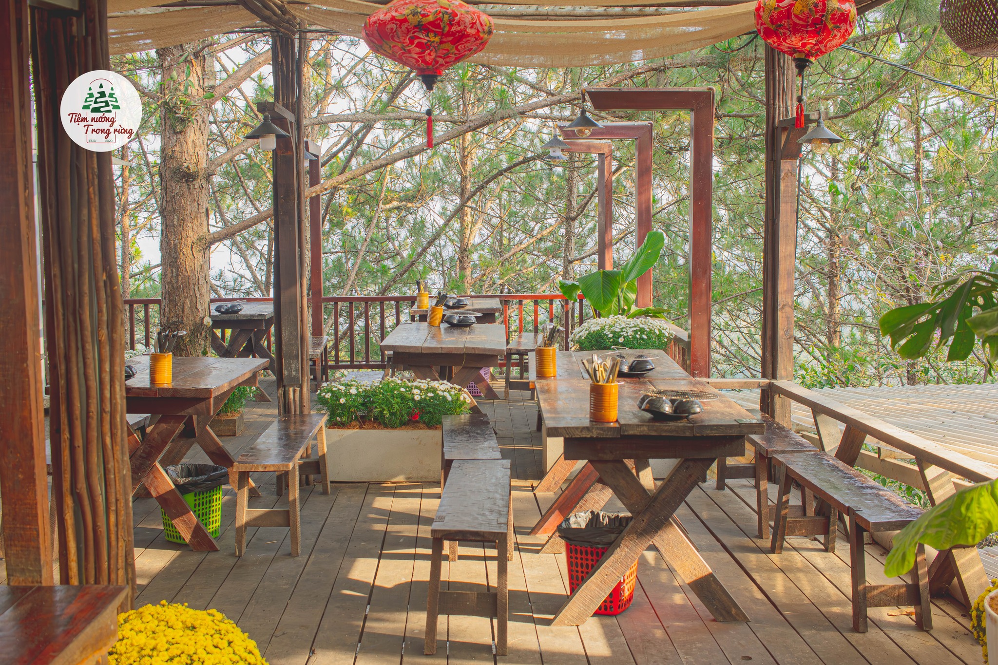 Nếu bạn muốn thử cảm giác ăn nướng giữa rừng thông, đây chính là nơi lý tưởng. Tiệm được bao quanh bởi cây cối và sương mờ nhẹ mỗi chiều, tạo nên bầu không khí vừa ấm cúng vừa huyền ảo. Món ăn được chuẩn bị nhanh, hương vị phù hợp khẩu vị nhiều người.
